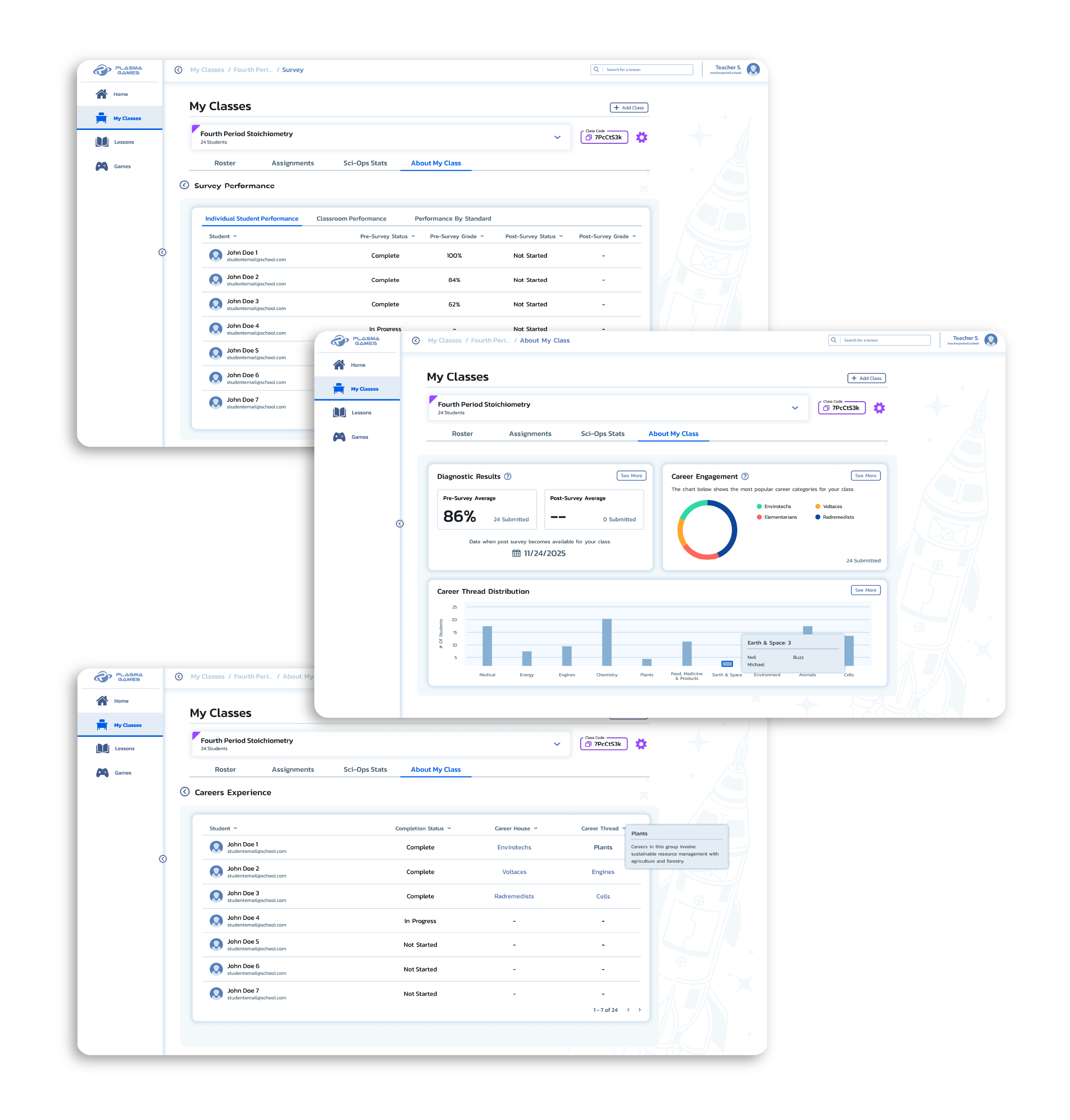 An improvement from the original questionnaire, teachers are able to monitor what careers their students have expressed interest in and see class aggregate data. Using this information, teachers are then able to tailor their instruction to their classroom’s specific interests.